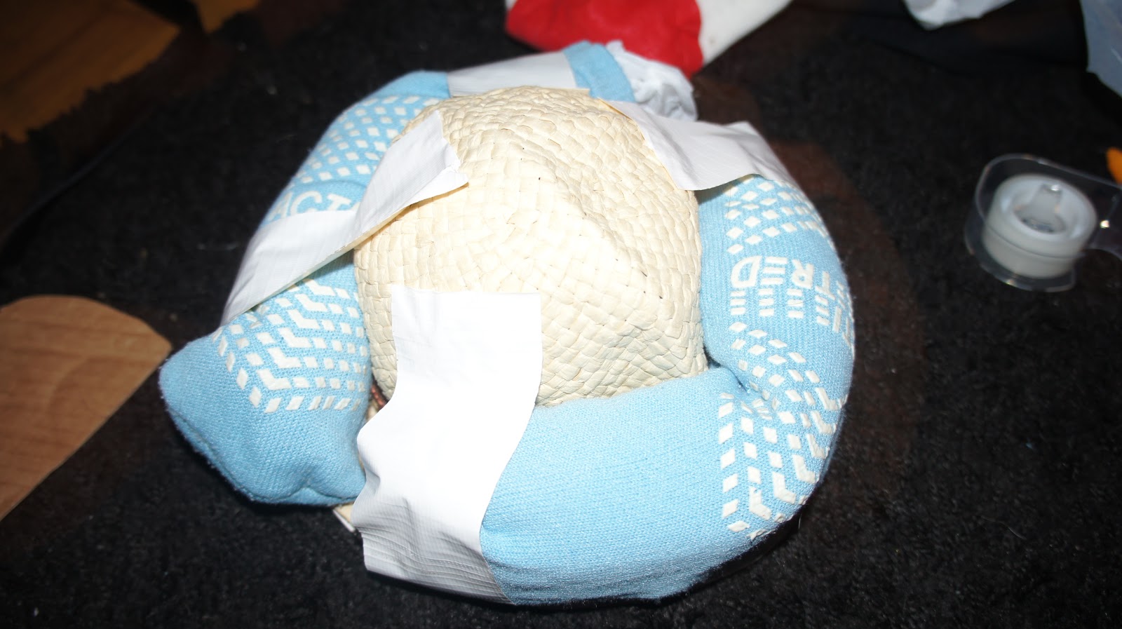 Stuff some socks with plastic bags and tape around the hat above the cardboard