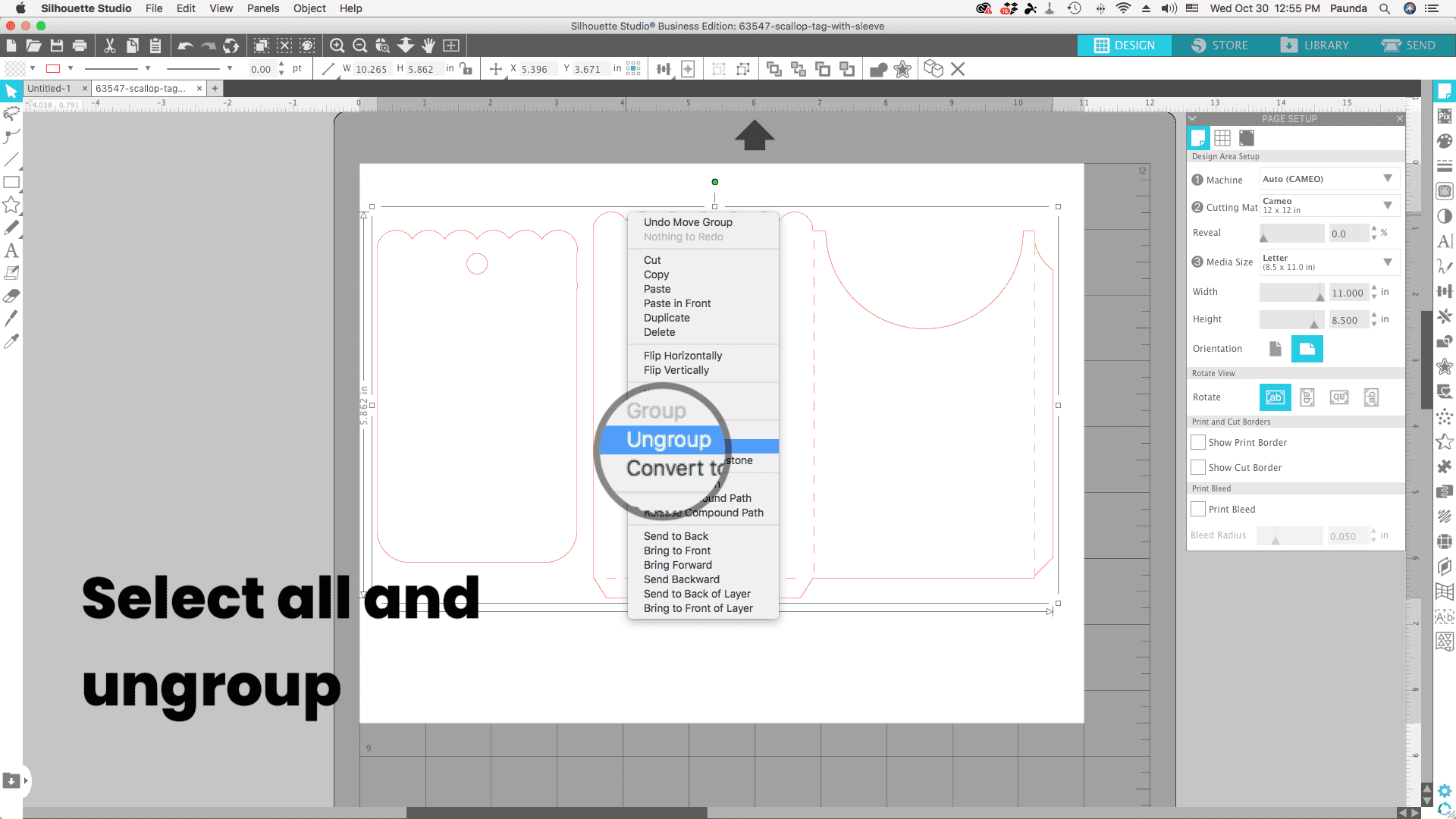 For this tutorial you will need to purchase the design in the Silhouette Design Store here. It was only .50 cents when I got it but originally I think it’s only .99 cents. When you are purchase and download the design file, be sure to click open with and select Silhouette Studio. Or you can open up Silhouette Studio and open the file from your library or directly by going to File>Open and finding where you downloaded the file.